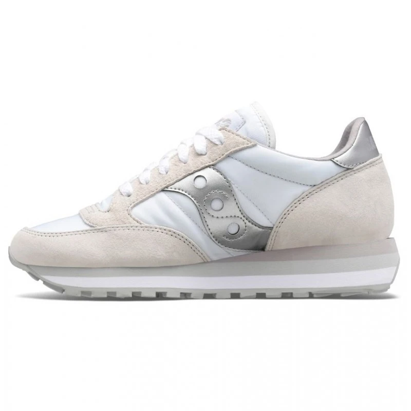 Jazz Triple è un’evoluzione del classico Jazz Original, popolare nel mercato femminile. L’intersuola è più alta rispetto a quella dell’iconica Jazz O’ ed offre una perfetta combinazione tra stabilità e ammortizzazione del piede. La suola in gomma garantisce un’ottima resistenza all’usura.